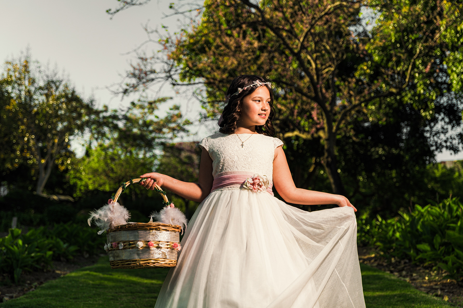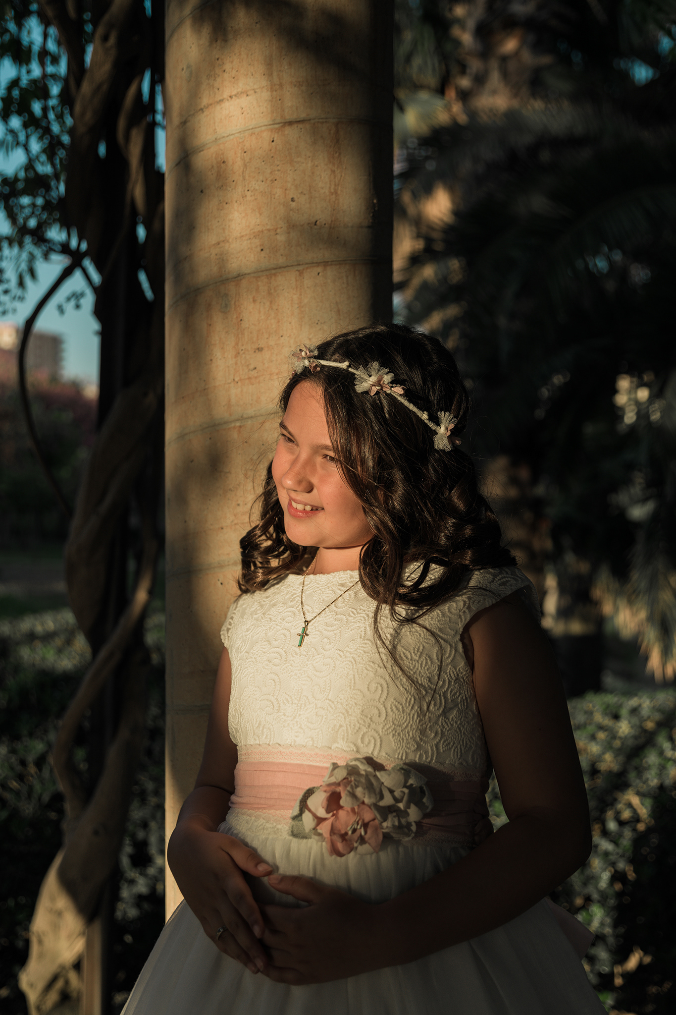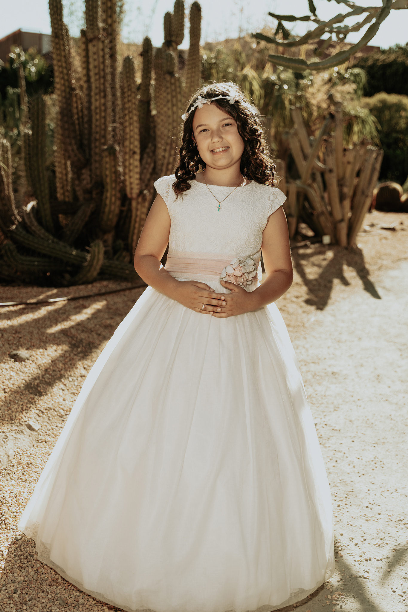 "El reportaje de Blanca en el Parque de la Paloma de Benalmádena fue un viaje entre dos mundos. Comenzamos aprovechando la luz suave y las texturas desérticas del jardín de cactus para lograr unos retratos Fine Art minimalistas, para luego adentrarnos en la frescura de los jardines principales. Esta mezcla de escenarios nos permitió jugar con diferentes paletas de color, desde los tonos tierra y pasteles hasta los verdes vibrantes, capturando la alegría y la elegancia de Blanca en un entorno lleno de contrastes."
