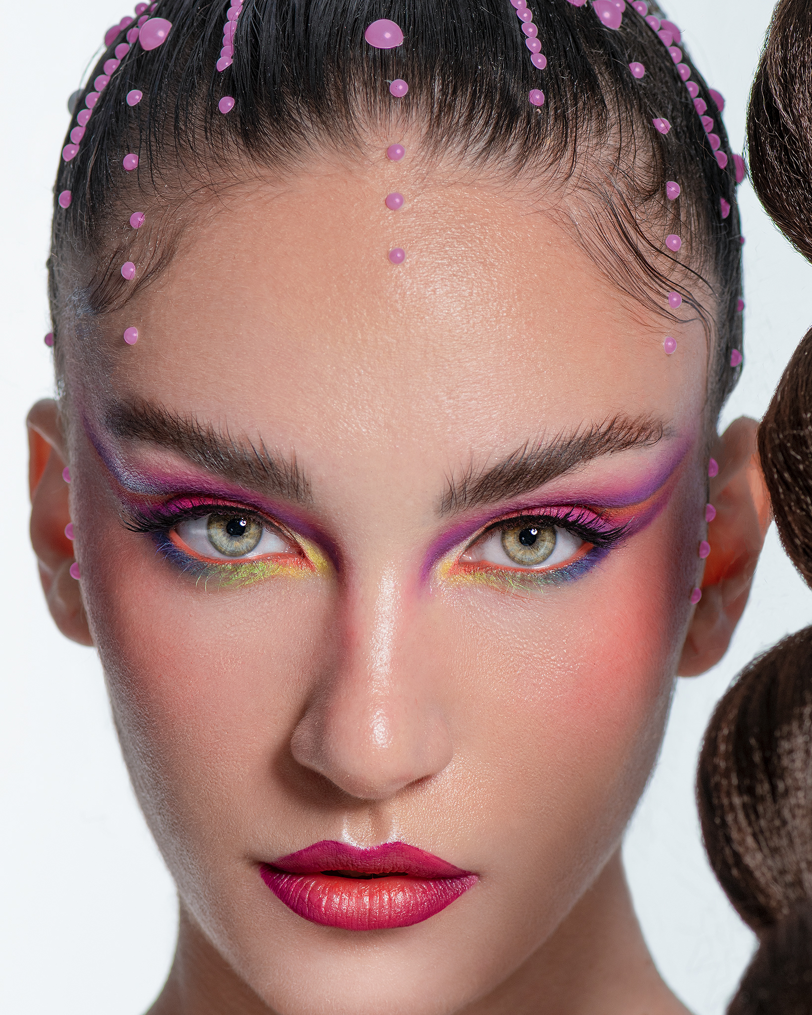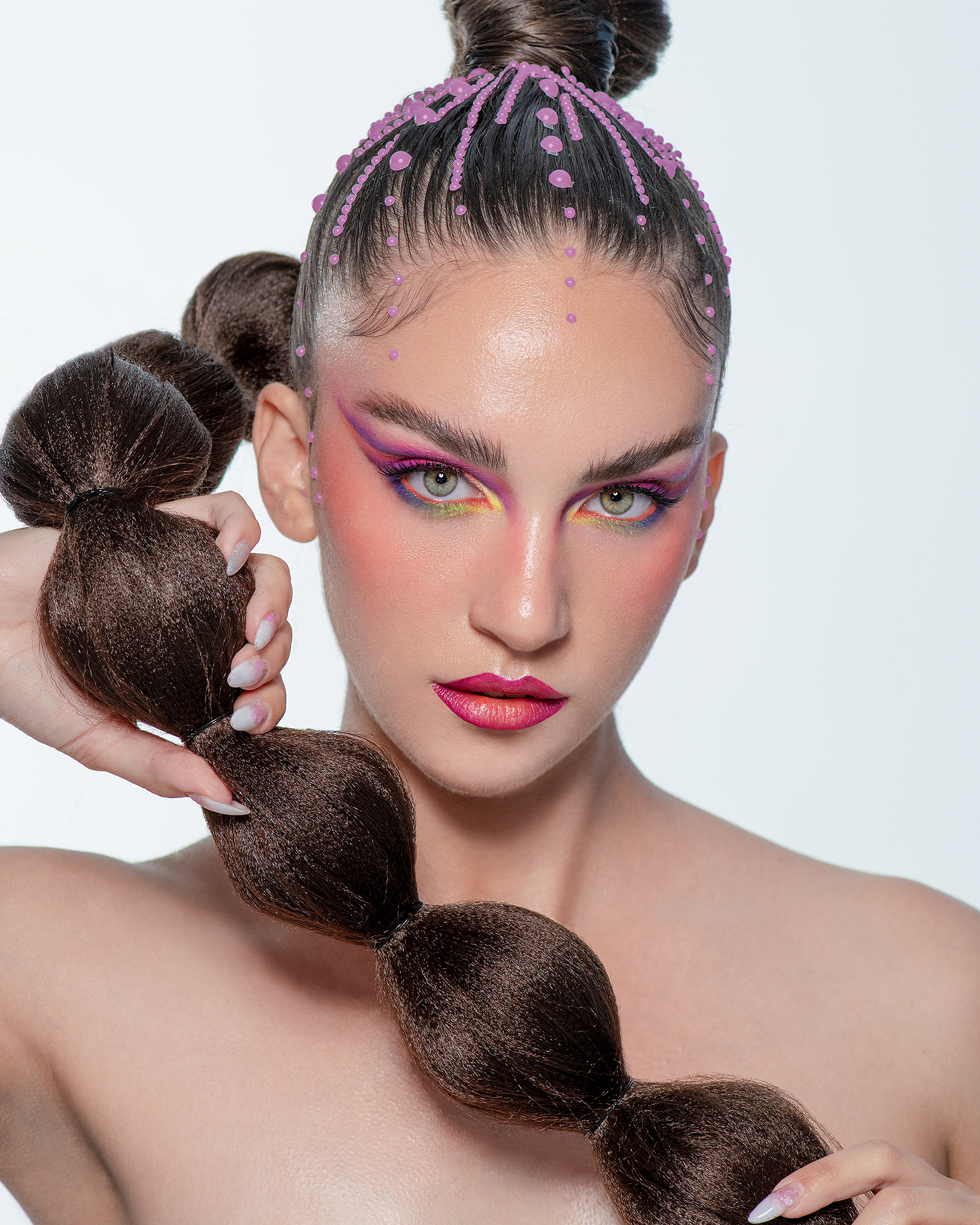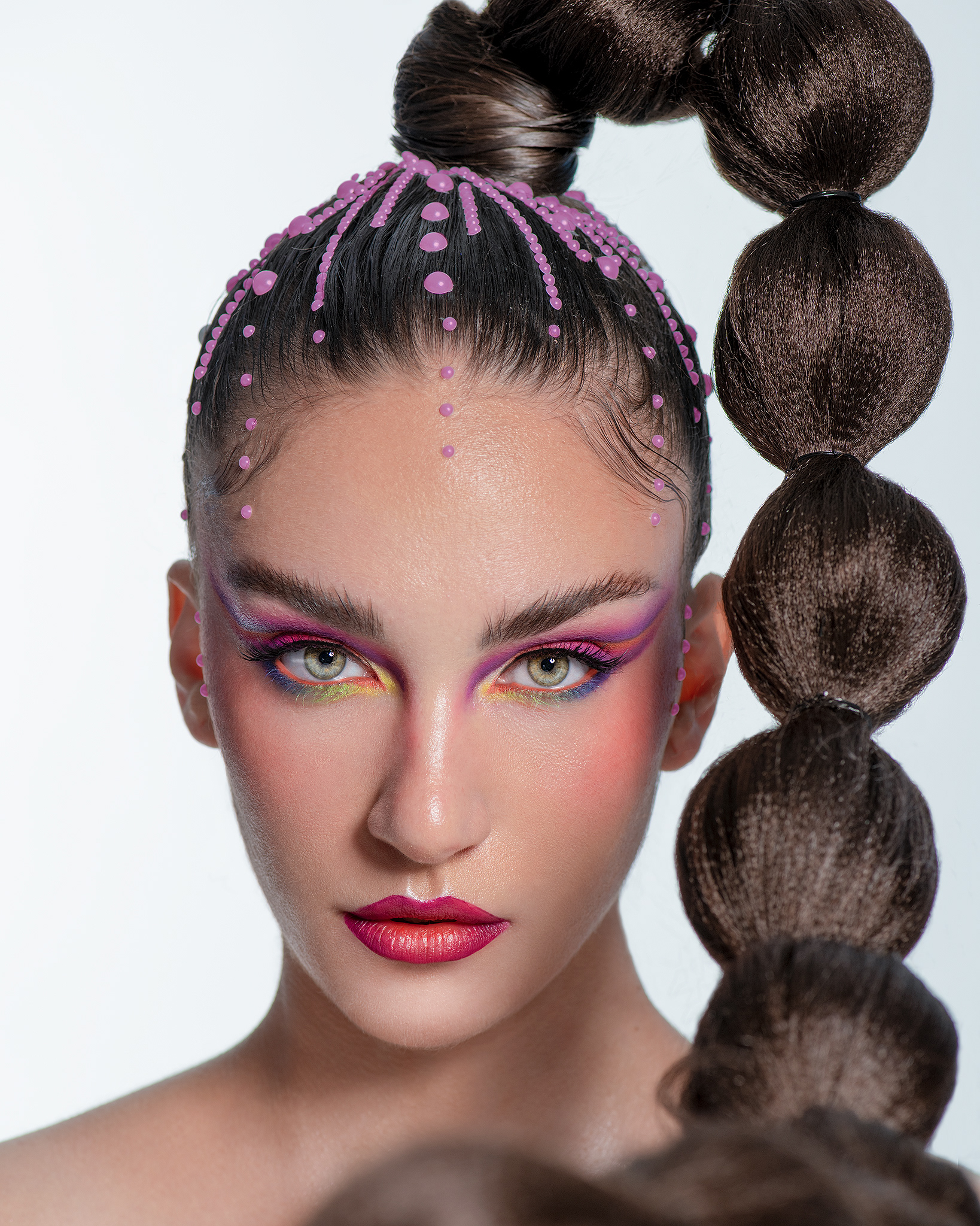 Sinergia entre Estructura y Color "Neon Geometry" es una explosión visual que fusiona el arte de la peluquería arquitectónica con un maquillaje cromático audaz. En esta colaboración, las formas definidas del peinado se entrelazan con una paleta de sombras neón, creando un equilibrio dinámico entre la rigidez de la forma y la fluidez del color. Desde la óptica del retocador, el desafío se centró en la fidelidad del color y la nitidez textural. Se aplicó un flujo de trabajo de alta gama para resaltar los detalles del peinado de Joh Rodrigues, asegurando que cada sección mantuviera su brillo y definición. En el rostro, el retoque mediante Dodge & Burn se enfocó en limpiar la piel de forma impecable, permitiendo que el maquillaje vibrante sea el protagonista absoluto sin distracciones, logrando una estética limpia, saturada y profundamente moderna. Créditos del Proyecto Fotografía y Retoque: Fco Benitez Maquillaje (MUAH): Vanesa Delgado Peluquería: Joh Rodrigues Modelo: Dani Orlando