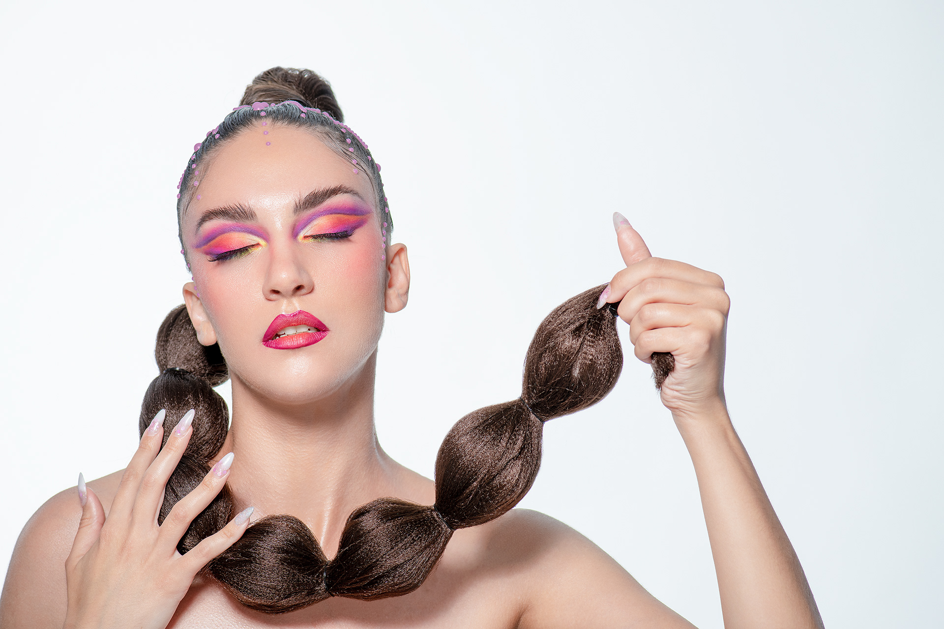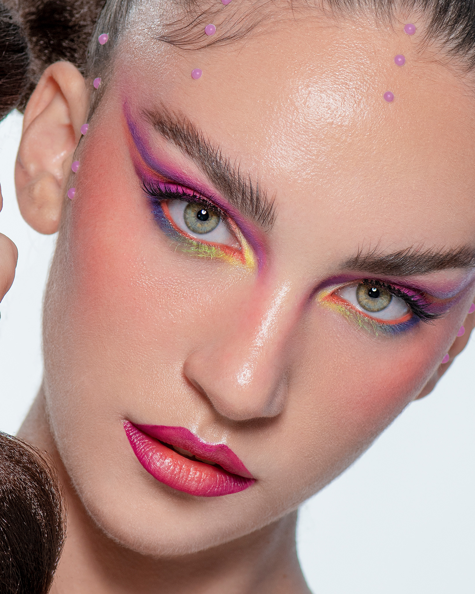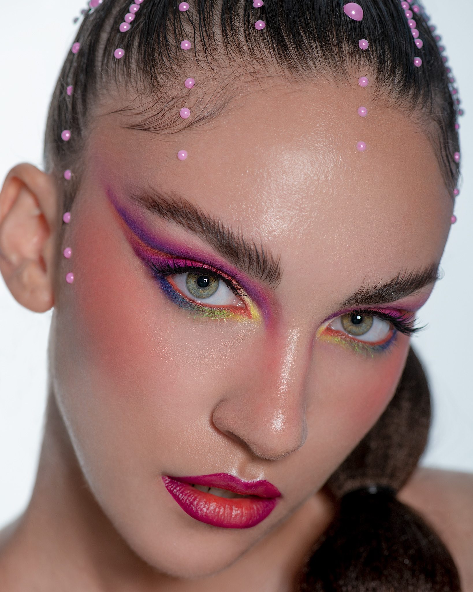 Sinergia entre Estructura y Color "Neon Geometry" es una explosión visual que fusiona el arte de la peluquería arquitectónica con un maquillaje cromático audaz. En esta colaboración, las formas definidas del peinado se entrelazan con una paleta de sombras neón, creando un equilibrio dinámico entre la rigidez de la forma y la fluidez del color. Desde la óptica del retocador, el desafío se centró en la fidelidad del color y la nitidez textural. Se aplicó un flujo de trabajo de alta gama para resaltar los detalles del peinado de Joh Rodrigues, asegurando que cada sección mantuviera su brillo y definición. En el rostro, el retoque mediante Dodge & Burn se enfocó en limpiar la piel de forma impecable, permitiendo que el maquillaje vibrante sea el protagonista absoluto sin distracciones, logrando una estética limpia, saturada y profundamente moderna. Créditos del Proyecto Fotografía y Retoque: Fco Benitez Maquillaje (MUAH): Vanesa Delgado Peluquería: Joh Rodrigues Modelo: Dani Orlando