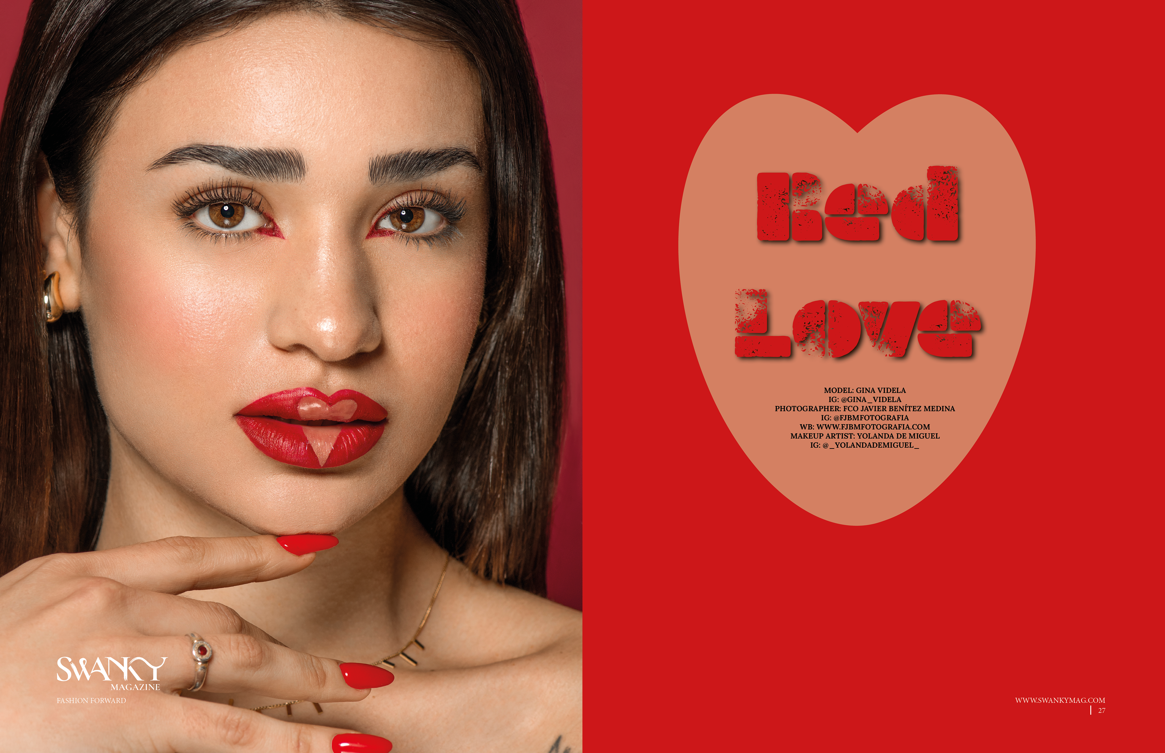 Estética Romántica y Sofisticación Editorial Publicada en Swanky Magazine, esta editorial especial de San Valentín captura la esencia del romanticismo desde una perspectiva de moda contemporánea. Protagonizada por la modelo Gina, la sesión se apoya en el maquillaje de Yolanda de Miguel para crear un look que equilibra la calidez de los tonos rosados y rojizos con una luminosidad cutánea excepcional. Es una propuesta que eleva el concepto de San Valentín hacia una estética de lujo, huyendo de los tópicos y centrándose en la elegancia de la forma y el color. Técnicamente, el proceso de post-producción se enfocó en la armonía de los subtonos cálidos. El retoque de la piel de Gina se realizó con un Dodge & Burn de alta precisión para potenciar ese efecto "glow" que respira frescura y salud. Se prestó especial atención a la saturación de los pigmentos utilizados por la maquilladora, asegurando que los rojos y rosas mantuvieran su fuerza editorial sin desbordar la textura natural de la piel. El resultado final es una serie vibrante y sofisticada que demuestra la capacidad de transformar un concepto temático en una pieza de alta gama para publicaciones internacionales. Créditos del Proyecto Publicación: Swanky Magazine Concepto: Special Valentine's Edition Fotografía y Retoque: Fco Benitez Maquillaje (MUAH): Yolanda de Miguel Modelo: Gina