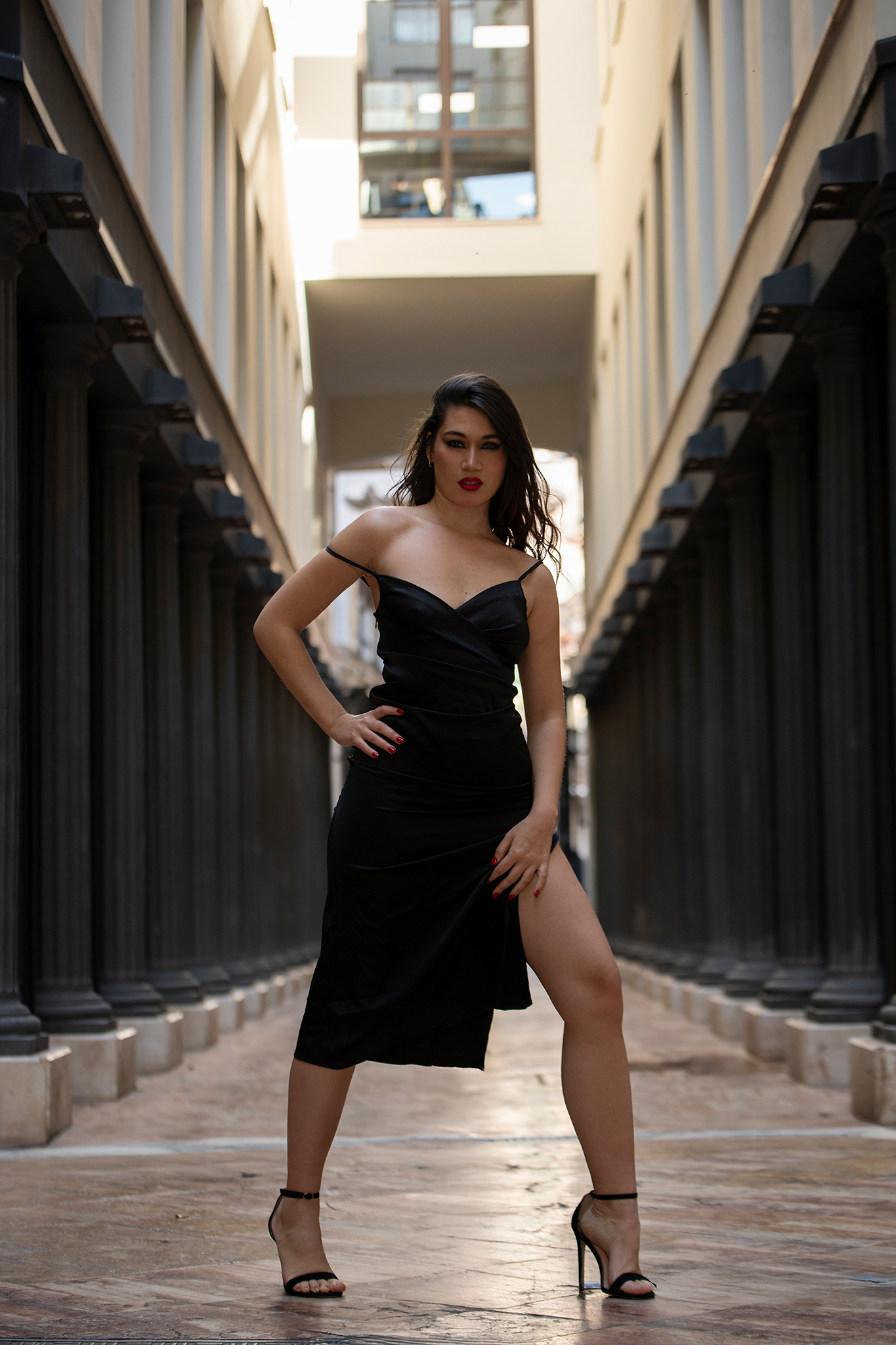"Una exploración de la sofisticación contemporánea entre las texturas de la ciudad. 'Urban Shadows' captura la elegancia atemporal del vestido negro frente al carácter histórico de la arquitectura urbana. La serie juega con el contraste entre la suavidad del movimiento y la rigidez de la piedra, utilizando la luz natural para esculpir la figura. El tránsito del color al blanco y negro profundiza en la narrativa del claroscuro, elevando el street-style a una categoría de moda editorial de lujo." Créditos del Equipo: Fotografía y Retoque: Francisco Benítez | @fco_benitezz Modelo: Elena Sartori | @elenasartori98 Maquillaje: Vanesa Delgado | @kiara_mkp